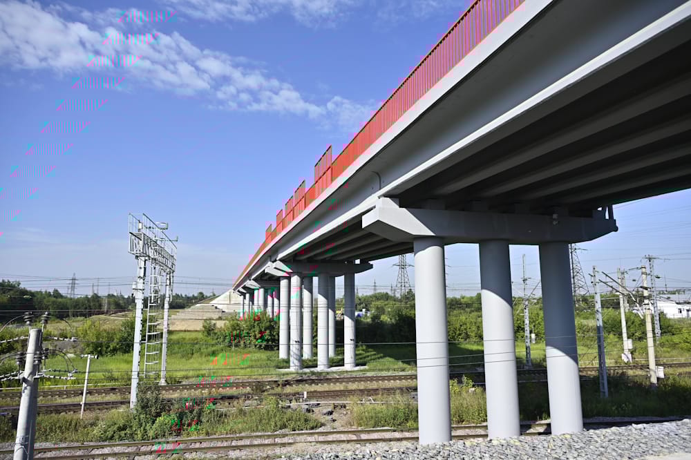 Протяженность объекта — 3,8 км. Проектом предусмотрено строительство 3 путепроводов, 4 подпорных стенок и 7 дорожных участков. Строительно-монтажные работы ведутся с января 2025 года. Уже возведена наземная часть путепроводов. Первый и третий путепровод готов на 90 %, второй — на 75 %. На основном ходе и съездах устроена дорожная одежда и нижний слой основания, установлен бортовой камень. На 40 % готово наружное освещение.