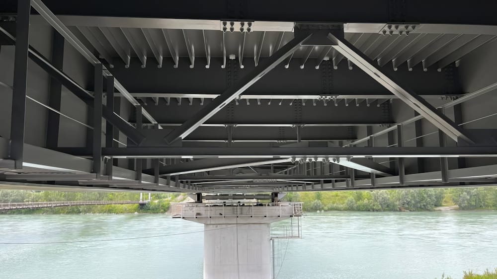 На данный момент строительная готовность объекта составляет 87 %. Здесь уже завершены работы по устройству металлического пролетного строения, устроено земляное полотно на подходах, выполнены работы по укреплению насыпи.