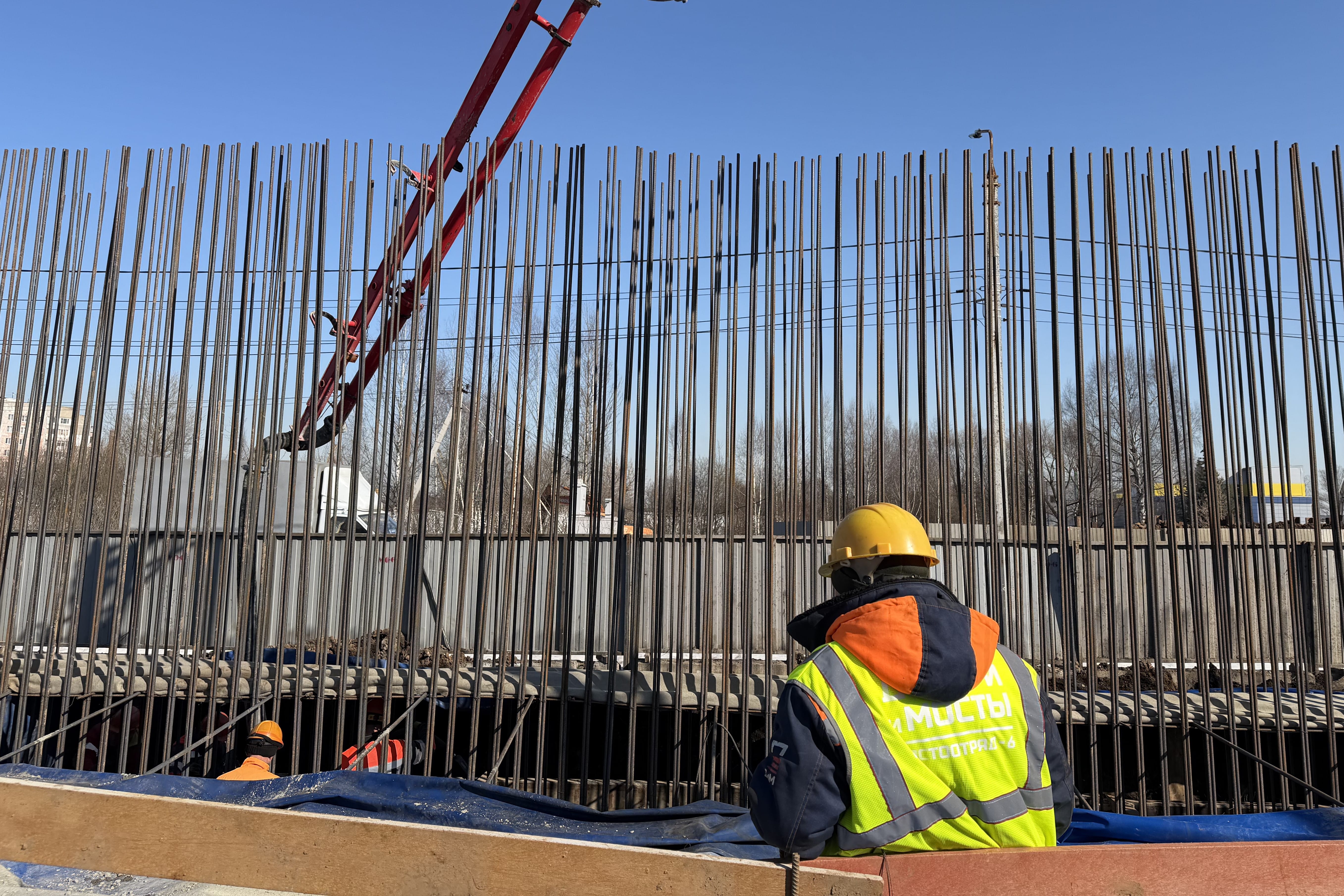 После завершения ростверка строители приступят к возведению стоек опоры и их бетонированию, затем — к устройству ригеля, на который будет опираться пролетное строение.